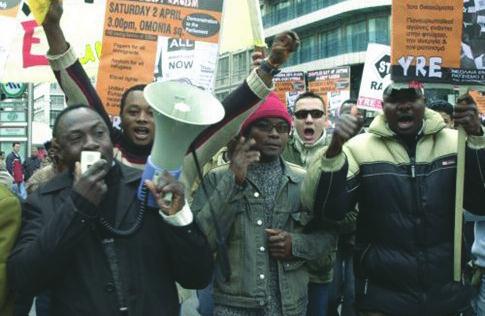 Συγκέντρωση έγχρωμων αλλοδαπών στην πλατεία Ομονοί-ας το 2010. Διεκδικούν δικαιώματα και πραγματοποιούν πορεία διαμαρτυρίας στην καρδιά της Αθήνας.