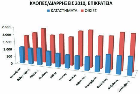 Κλοπές και διαρρήξεις σε οικίες και καταστήματα το 2010, σε όλη την επικρά-τεια. Όπως βλέπετε, τους μήνες των διακοπών, οι διαρρήξεις κατοικιών σημει-ώνουν άνοδο. Σίγουρα οι διαρρήκτες δεν κάνουν διακοπές τούς μήνες που κά-νει ο περισσότερος κόσμος...