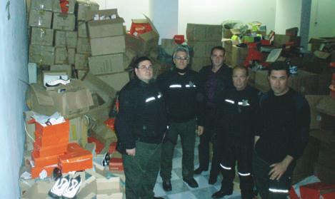 ρικό αναβατόριο, που διευκόλυνε τη μετα-φορά των εμπορευμάτων. Τόνοι ρούχων, πα-πούτσια, ρολόγια, τσάντες, γυαλιά ηλίου, ζώνες επώνυμων εταιρειών, υπήρχαν συ-σκευασμένα στο χώρο σε τεράστιες ποσότη-τες. Για να μπει κάποιος στο χώρο της παρά-νομης αποθήκης, έπρεπε να είναι «μυημέ-νος»: Όταν ο σύρτης της εξωτερικής πόρτας της αποθήκης ήταν δεξιά, τότε μπορούσε κάποιος να χτυπήσει το κουδούνι και να προχωρήσει στο εσωτερικό της αποθήκης. Αν ο σύρτης ήταν αριστερά, οι «επισκέπτες»