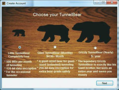 Εγκαταστήστε το TunnelBear ακολουθώντας τον οδηγό εγκατάστασης. Δημιουργήστε έναν λογαριασμό δίνοντας e–mail, username και