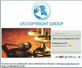 downloading. Ούτε λίγο ούτε πολύ, 23.322 χρήστες του Internet πρόκει-ται λάβουν το κατηγορητήριο. Ύστερα από αυτό, η κινηματογραφική εταιρεία Nu Image αναμένει να λάβει αρκετές δεκάδες εκατομμύρια δο-λάρια ως αποζημίωση, χωρίς καν η υπόθεση να φθάσει στα δικαστήρια. Την υπόθεση έχει αναλάβει η ειδικευμένη σε τέτοια θέματα αμερικανική εταιρεία, United States Copyright Group ή για συντομία USCG (http://dglegal.force.com/SiteLogindglegal), η οποία, από τον Σεπτέμ-βριο του 2010 που ξεκίνησε τις δραστηριότητές της, μέχρι σήμερα, έχει μηνύσει χιλιάδες χρήστες του Internet.