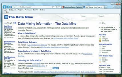 Δεν είναι ένα site που ενδιαφέρει τους πάντες, αλλά για όσους ση-μαίνει κάτι το Data Mining και οι συναφείς τομείς, είναι πραγματικός παράδεισος. Στην πρώτη σελίδα υπάρχουν παραπομπές στο τι είναι το Data Mining, σε εταιρείες και οργανισμούς που ασχολούνται με το αντικείμενο και σε άτομα που εργάζονται πάνω σε αυτό, αλλά και σε γενικές πληροφορίες.