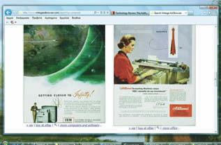 Ένας πολύ καλός τρόπος για να παρακολουθήσει κάποιος τις εξελίξεις σε οποιονδήποτε τομέα, είναι να δει τις αντίστοιχες διαφημίσεις κάθε χρονο-λογικής περιόδου. Το Vintage Ad Browser είναι μία πραγματική κιβωτός για παλιές διαφημίσεις. Πρόκειται για το «αδελφό» site του Cover Browser, οπότε έχει πολλά κοινά χαρακτηριστικά με αυτό. Και εδώ υπάρ-χουν κύριες κατηγορίες στην πρώτη σελίδα, αλλά και πλαίσιο αναζήτησης με βάση κάποιο συγκεκρι-μένο αντικείμενο. Για πα-ράδειγμα, μία αναζήτηση με τη λέξη «Computer» επιστρέφει πάνω από 1.100 διαφημίσεις, κάποι-ες από τις οποίες θα μας θυμίσουν ξεχασμένες επο-χές, τότε που οι πιο μικροί υπολογιστές ήσαν μεγάλοι σαν ντουλάπες. Νοσταλγία