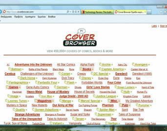 Το Cover Browser είναι ένας πραγματικός παρά-δεισος για όποιον ενδιαφέρεται για το συγκεκριμέ-νο αντικείμενο, μια που περιέχει πάνω από 450.000 εξώφυλλα περιοδικών, κόμιξ και βι-βλίων.