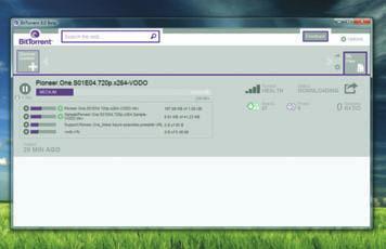 πουμε με πολύ ξεκάθαρο τρόπο και με τη βοήθεια, όπου χρειάζεται, σχημάτων, πληροφο-ρίες, όπως ο αναμενόμενος χρόνος ολοκλήρωσης ή Seeds και Peers. Μετά την ολοκλή-ρωση του download, μπορούμε να αναπαραγάγουμε το αρχείο, αν πρόκειται για βίντεο. Ένα μεγάλο κουμπί πάνω αριστερά εμφανίζει τα εικονίδια των γνωστών Apps, δηλαδή, εφαρμογιδίων που υπάρχουν και στον μTorrent. Κάποια από αυτά είτε παραπέμπουν το χρήστη άμεσα σε περιεχόμενο (π.χ., Pioneer One, FourEyed Monsters) είτε σε πηγές από τις οποίες ο χρήστης μπορεί να το κατεβάσει (π.χ., Vodo, TED). Αυτό είναι ιδιαίτερα ση-μαντικό για τους άπειρους χρήστες, οι οποίοι δεν γνωρίζουν πώς να αξιοποιήσουν έναν BitTorrent client. Πατώντας το «+» που υπάρχει δίπλα σε κάθε εφαρμογίδιο, μπορούμε να το προσθέσουμε σε μία λωρίδα στο πάνω μέρος για εύκολη ανεύρεση. Το γρανάζι των Options, πάνω δεξιά, ανοίγει μία κάθετη λωρίδα στην οποία οι ρυθμίσεις είναι χωρισμέ-νες σε τρεις ενότητες, τις General, Advanced και Expert. Όπως καταλαβαίνετε, καθεμία έχει διαφορετικό βαθμό δυσκολίας. H Expert, η οποία απευθύνεται σε έμπειρους χρή-στες, μας παρουσιάζει την κλασική καρτελοθήκη ρυθμίσεων που γνωρίζαμε και από τις προηγούμενες εκδόσεις. Πατώντας το γρανάζι στη λωρίδα που υπάρχει στα δεξιά της λω-ρίδας εφαρμογιδίων στην κορυφή, μπορείτε να διαγράψετε από αυτήν όποια θέλετε. Το μεγάλο τετράγωνο κουμπί My Files σάς εμφανίζει τα αρχεία που έχετε κατεβάσει. Τέλος, το βελάκι που υπάρχει δίπλα του, σας επιτρέπει να δημιουργήσετε ένα προσωπικό κανάλι διαμοιρασμού αρχείων. Τα κανάλια είναι ίσως το πιο «φανταχτερό» χαρακτηριστικό του προγράμματος και το πιο πρόσφατο που προστέθηκε. Μπορείτε να δημιουργήσετε όσα κανάλια θέλετε και να διαμοιραστείτε μέσω αυτών μεγάλα αρχεία με όποιους θέλετε. Στην παρούσα φάση, δεν υπάρχει περιορισμός στο μέγεθος των αρχείων που θα διακινή-σετε. Ξεκινώντας τη δημιουργία καναλιού, μπορείτε να δώσετε το όνομά σας, το όνομα του καναλιού και προαιρετικά ένα εικονίδιο. Όμως, μπορείτε να τα αφήσετε όλα αυτά για αργότερα. Στην επόμενη οθόνη, εισάγετε, αν θέλετε, κάποιο μήνυμα, πατάτε το More Content και προσθέτετε αρχεία που έχετε κατεβάσει ή απλώς βρίσκονται στο δίσκο σας. Πατώντας το Add, ξεκινά το ανέβασμά τους στο Διαδίκτυο. Στο δεξί μέρος συμπληρώνετε το e–mail του παραλήπτη. Κάτω από αυτό υπάρχει η διεύθυνση των αρχείων στο Διαδί-κτυο, την οποία μπορείτε να αντιγράψετε. Κάτω δεξιά υπάρχουν κουμπιά επικοινωνίας μέσω Twitter και Facebook.