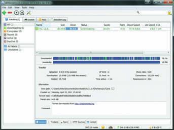 Στις πληροφορίες σχετικά με το torrent που κατεβάζουμε, αναγράφεται η ταχύτητα κατεβάσματος ή ανεβάσματος, ο χρόνος που χρειάζεται για να ολοκληρωθεί το κατέβασμα, η διαθεσιμότητα του αρχείου κ.λπ., ενώ στις άλλες καρτέλες μπορείτε να δείτε τους peers, τα περιεχόμενα του torrent κ.λπ.