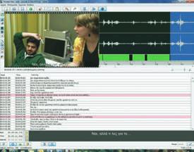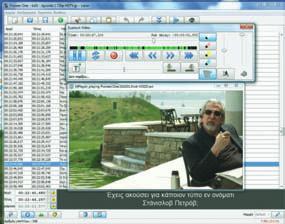 6 Το τελευταίο κουμπί της γραμμής εργαλείων πάνω δεξιά εμφανίζει την οθόνη προεπισκόπησης, στην οποία βλέπουμε μαζί το βίντεο, το κείμενο των υποτίτλων και την κυματομορφή του ήχου με επιλεγμένο το τμήμα που αντιστοιχεί στον τρέχοντα υπότιτλο.