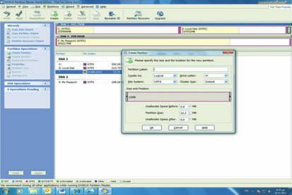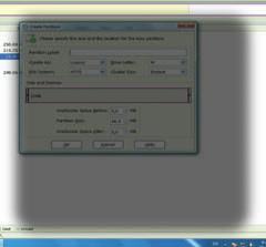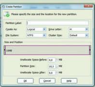 2 Κάνοντας δεξί κλικ πάνω στον αδιάθετο χώρο ενός δίσκου και επιλέγοντας Create, εμφανίζεται αυτό το παράθυρο, όπου εισάγουμε τα στοιχεία της κατάτμησης που θα δημιουργήσουμε (σύστημα αρχείων, μέγεθος, τύπος κ.ά.).