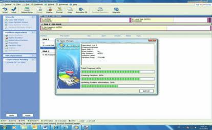 3 Αφού ορίσουμε τις παραμέτρους διαμόρφωσης της νέας κατάτμησης, πρέπει να πατήσουμε το κουμπί Apply για να ξεκινήσει η διαδικασία δημιουργίας. Οσο διαρκεί αυτή, ένα παράθυρο μας ενημερώνει διαρκώς για την πρόοδό της.