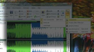 για αποκοπή, αντιγραφή στο πρόχειρο ή σε αρχείο, επικόλληση απλή ή με μείξη με τον ήδη υπάρχοντα ήχο, διαγραφή και κροπάρισμα. Προ-σπερνώντας τα αναμενόμενα κουμπιά Undo/Redo, συναντάμε επιλογές για επανάληψη του επιλεγμένου τμήματος όσες φορές θέλουμε ή σίγασή του, μείξη του τρέχοντος αρχείου με κάποιο άλλο και εισαγωγή είτε αρ-χείου είτε σιωπής.