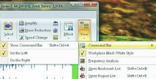 3 Εδώ έχουμε επιλέξει ένα τμήμα της κυματομορφής με τις μπάρες που υπάρχουν στο κάτω μέρος της. Επίσης, από το μενού View της καρτέλας Home έχουμε επιλέξει την εμφάνιση της Command Bar στα αριστερά.