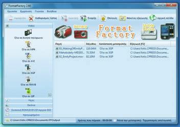 ΑΠΑΙΤΗΣΕΙΣ:AnyVideo.jpg E να αξιόλογο πρόγραμμα μετατροπής αρχείων multimedia από ένα format σε κάποιο άλλο. Έχει ιδιαίτερα λειτουργικό περιβάλλον, με μία καρτελοθήκη στα αριστερά, η οποία σας επιτρέπει να επιλέξετε γρήγορα και άκοπα την επιθυμητή μετα-τροπή. Το περιβάλλον είναι στα Ελληνικά, κάτι που κάνει ακόμη πιο εύκολη τη χρήση του προγράμματος. Με το FormFactory μπορείτε να μετατρέψετε αρχεία βίντεο, ήχου και εικόνας. Υπάρ-χει επίσης μία ξεχωριστή καρτέλα για μετατροπές αρχείων σε format κατάλληλα για φορητές συσκευές, ενώ η τελευταία καρ-τέλα σάς επιτρέπει να μετατρέψετε DVD σε αρχείο βίντεο ή image file. Καθεμία από τις προαναφερθείσες κατηγορίες περιέ-χει μετατροπές που καλύπτουν το σύνολο σχεδόν των απαιτήσε-ων των χρηστών.