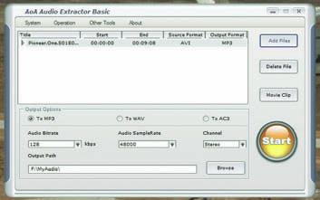 ΑΠΑΙΤΗΣΕΙΣ: Windows 2000/XP/Vista/7 A υτό το εργαλείο εξάγει τον ήχο από αρχεία βίντεο και τα αποθηκεύει σε ξεχωριστό αρχείο ήχου. Μπορεί να διαβάσει αρχεία βίντεο Avi, Mpeg, Mpg, Dat, Wmv, Mov, Mp4 και 3gp, ενώ μπορεί να αποθηκεύσει σε αρχεία ήχου Mp3, Wav και Ac3. Υποστηρίζεται και η ομαδική επεξεργασία αρχείων. Στη δωρεάν έκδοση του προγράμματος μπορείτε να επεξεργαστείτε έως τρία αρχεία τη φορά. Επίσης, αξίζει να αναφέρουμε ότι το πρόγραμμα υποστηρίζει την αποθήκευση μόνο του τμήματος που επιθυμούμε από την ηχητική επένδυση ενός αρχείου βίντεο. Η χρήση του AoA Audio Extractor είναι πολύ απλή. Φορτώνουμε ένα αρχείο βίντεο (ή περισσότερα) και στο κάτω μέρος επιλέγουμε τον τύπο του αρχεί-