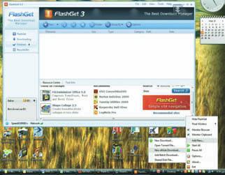 ΑΠΑΙΤΗΣΕΙΣ: Windows 2000/XP/Vista/7 T ο FlashGet είναι ένας εύχρηστος download manager που μπορεί να συνεργαστεί με την πλειονότητα των δια-θέσιμων Web browsers (Internet Explorer, Mozilla Firefox, Opera, κ.ά.), ενώ υποστηρίζει ένα πλήθος από πρωτόκολλα και τεχνολογίες, μέσω των οποίων μπορεί να κατεβάσει αρ-χεία: HTTP, HTTPS, FTP, Microsoft Media Services, RTSP, eMule (δίκτυο eDonkey) και BitTorrent. Η εναλλαγή ανάμεσα σ’ αυτά τα πρωτόκολλα είναι αυτόματη και διαφανής στο χρή-στη. Κατά τα άλλα, το πρόγραμμα αυξάνει την ταχύτητα του downloading 6 με 10 φορές. Αυτή η έκδοση, υλοποιεί την τε-χνική P4S, η οποία αυξάνει αισθητά την ταχύτητα. Επίσης, το πρόγραμμα μπορεί να καλέσει αυτόματα το εγκατεστημένο στον υπολογιστή σας antivirus.