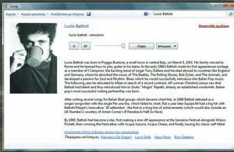 με βιογραφικό, φωτογραφία και ένα τραγούδι του που μπορείτε να ακούσετε ή να κατεβάσετε, καθώς και συνδέσμους προς άλ-λες εκτελέσεις του ίδιου τραγουδιού και προς άλλους καλλιτέ-χνες, με ανάλογη μουσική.