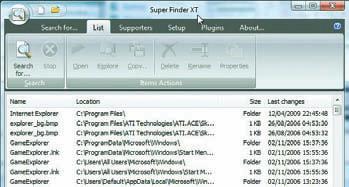 ΑΠΑΙΤΗΣΕΙΣ: Windows 2000/XP/Vista/7 T o Super Finder είναι ένα πολύ καλό πρόγραμμα αναζήτησης αρχείων και φακέλων, ενώ έχει και τη δυνατότητα αναζήτη-σης κειμένου μέσα σε αρχεία. Χρησιμοποιεί την παραδοσιακή μέθοδο αναζήτησης και όχι κάποιο ευρετήριο. Παρ’ όλα αυτά, εί-ναι αρκετά γρήγορο. Μπορείτε να επιλέξετε ανάμεσα σε δύο δια-φορετικούς τρόπους λειτουργίας (Simple ή Advanced) ανάλογα με τις ανάγκες σας όσον αφορά στην αναζήτηση. Τέλος, το Super Finder XT υποστηρίζει plug–ins, τα οποία μπορούν να αυξήσουν σημαντικά τις λειτουργίες και τις δυνατότητές του.