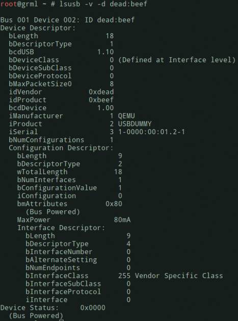 Η έξοδος του lsusb για τη συσκευή μας.